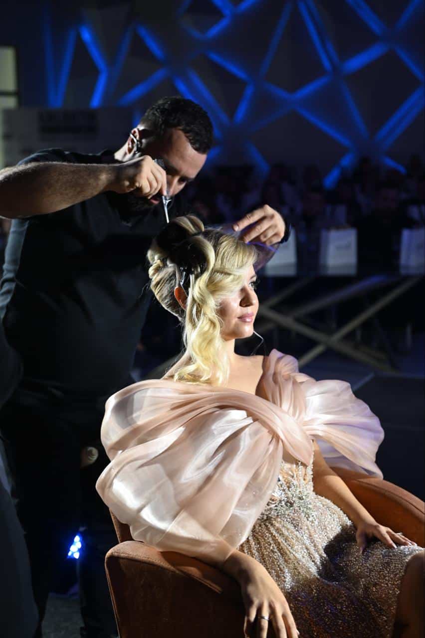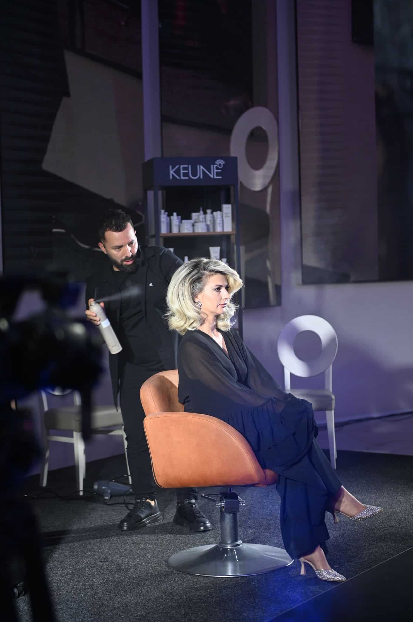 Edukator Saša uživo demonstrira svečane frizure na sceni – od pripreme, tehnike, prozivoda do finalnog oblikovanja, objašnjava zašto se određeni potez radi baš u tom trenutku i kako da frizura izgleda luksuzno, ali komercijalno isplativo za salon.